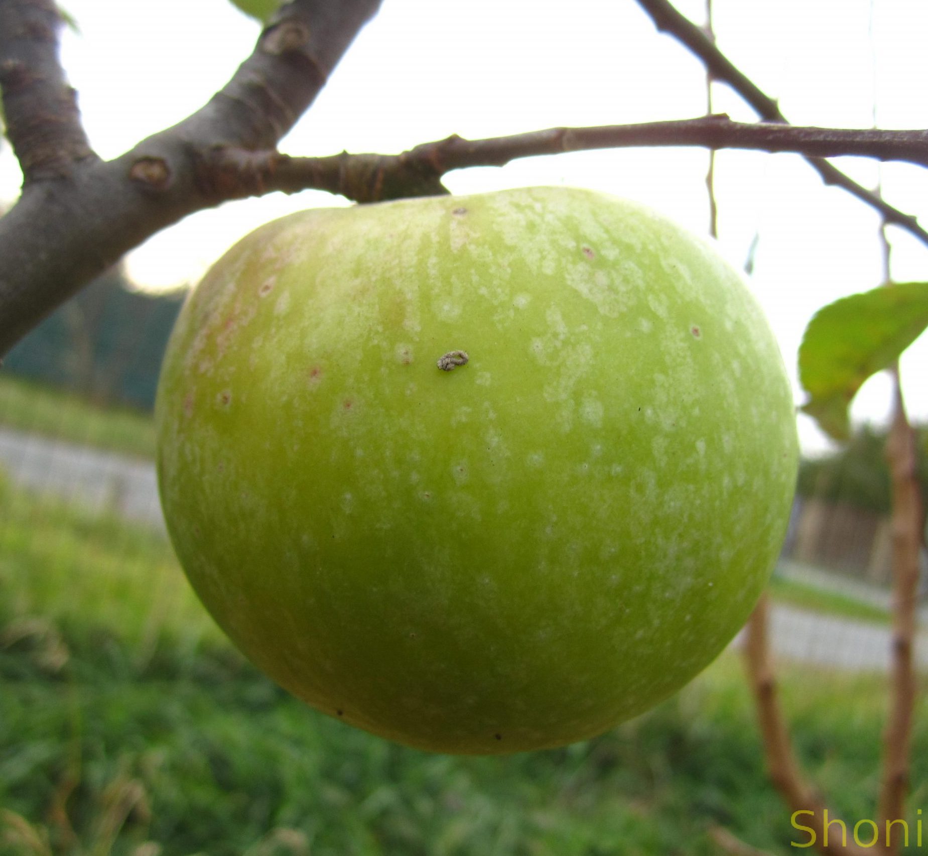 Плоди середні або великі, часто асиметричні, усічено-конічної форми, з гладкою поверхнею або слабкою ребристістю. Основне забарвлення яскраво-зелене, з численними великими білими підшкірковими цятками. На добре освітлених плодах до знімальної стиглості формується темно-малиновий рум’янець. Шкірка щільна, гладка, з помірним восковим нальотом, який посилюється під час зберігання.