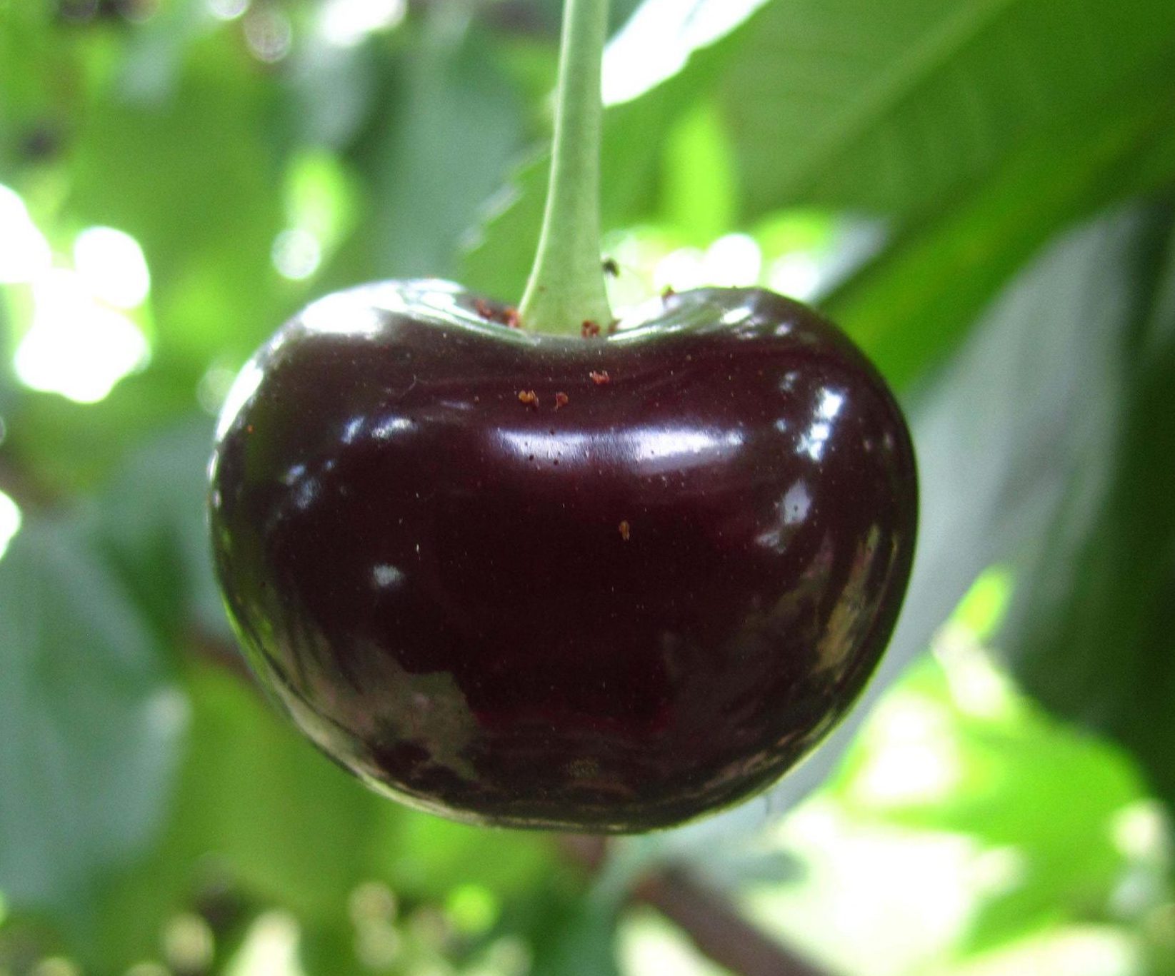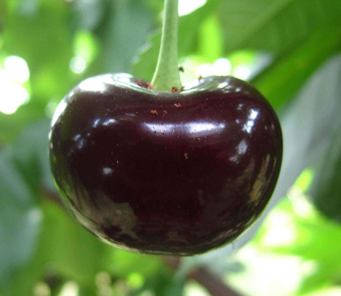 Плоди дуже великі, масою до 9 г, темно-червоного кольору, трохи сплющені, з блискучою, щільною шкіркою.