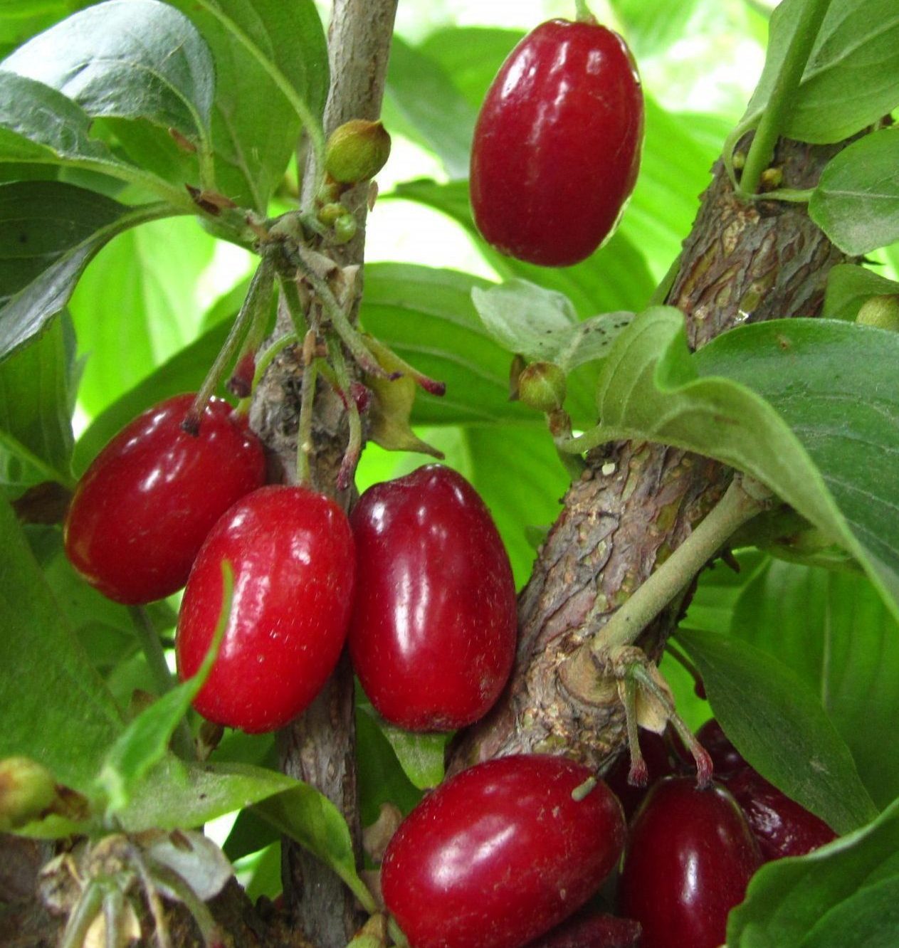 Два сорти на одному дереві — оригінальне рішення для тих, у кого обмежено місце або є лише одне дерево кизилу. Різні кольори плодів і терміни достигання на одній кроні вирішують відразу кілька завдань: взаємне запилення, розтягнутий сезон збору і справді декоративний вигляд протягом усього року.