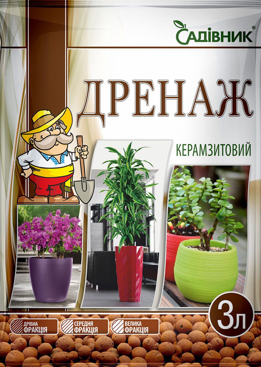 Дренаж керамзитовий – виготовлений методом термічного спікання високоякісної глини в гранулах. Фракція становить 5-15 мм . Використовується для забезпечення доступу повітря до коріння рослини, зменшення випаровування вологи з ґрунту, надає суміші гігроскопічності.