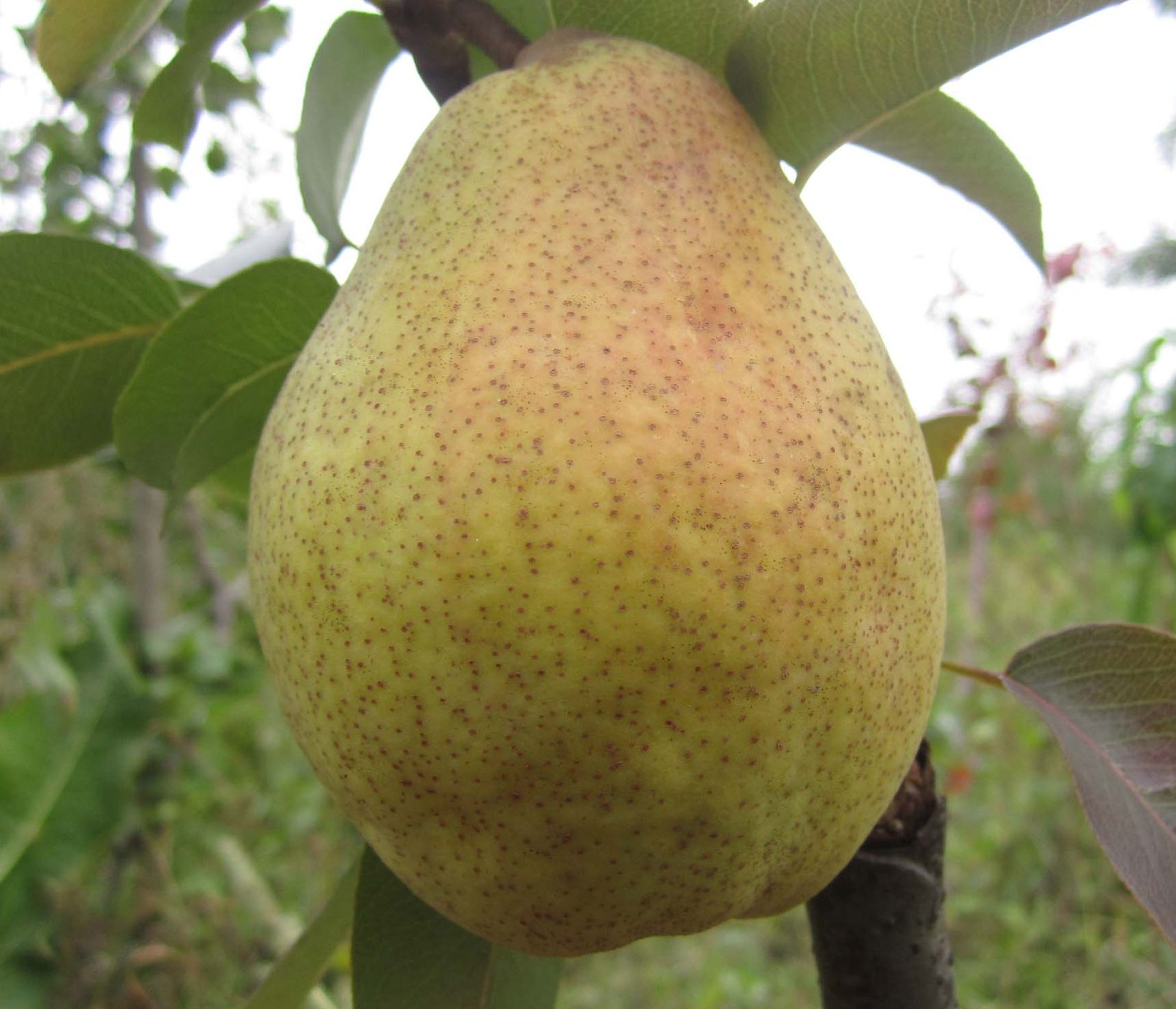 Плоди великі — 180–250 г і більше, класичної грушоподібної форми. Шкірка щільна, шорстка, при достиганні блідо-жовта зі слабким розмитим рум’янцем на сонячному боці.