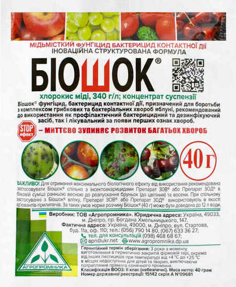 Біошок – це високоефективний контактний фунгіцид, розроблений для боротьби з комплексом грибкових та бактеріальних хвороб. Він допомагає зберегти врожай, запобігаючи розвитку патогенних мікроорганізмів на різних культурах.