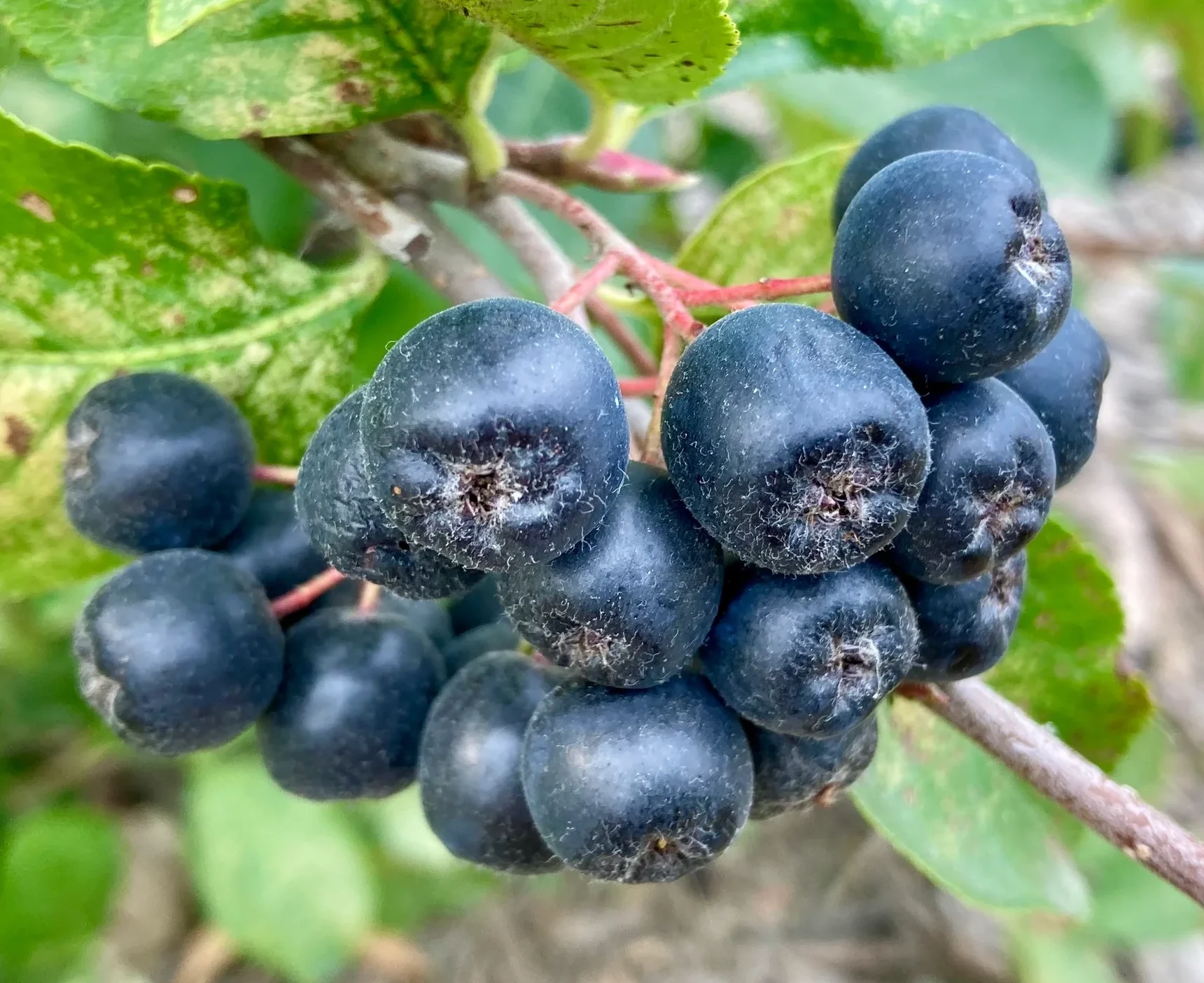Ягоди великі, фіолетово-чорного кольору, достигають наприкінці літа — у серпні-вересні. Смак кисло-солодкий із легкою терпкуватістю. Містять один із найвищих серед ягідних культур рівнів антоціанів і антиоксидантів. Підходять для вживання свіжими та переробки: сік, чай, варення, вино, сироп. Ягоди добре тримаються на гілках після достигання і можуть залишатись на кущі до зими.