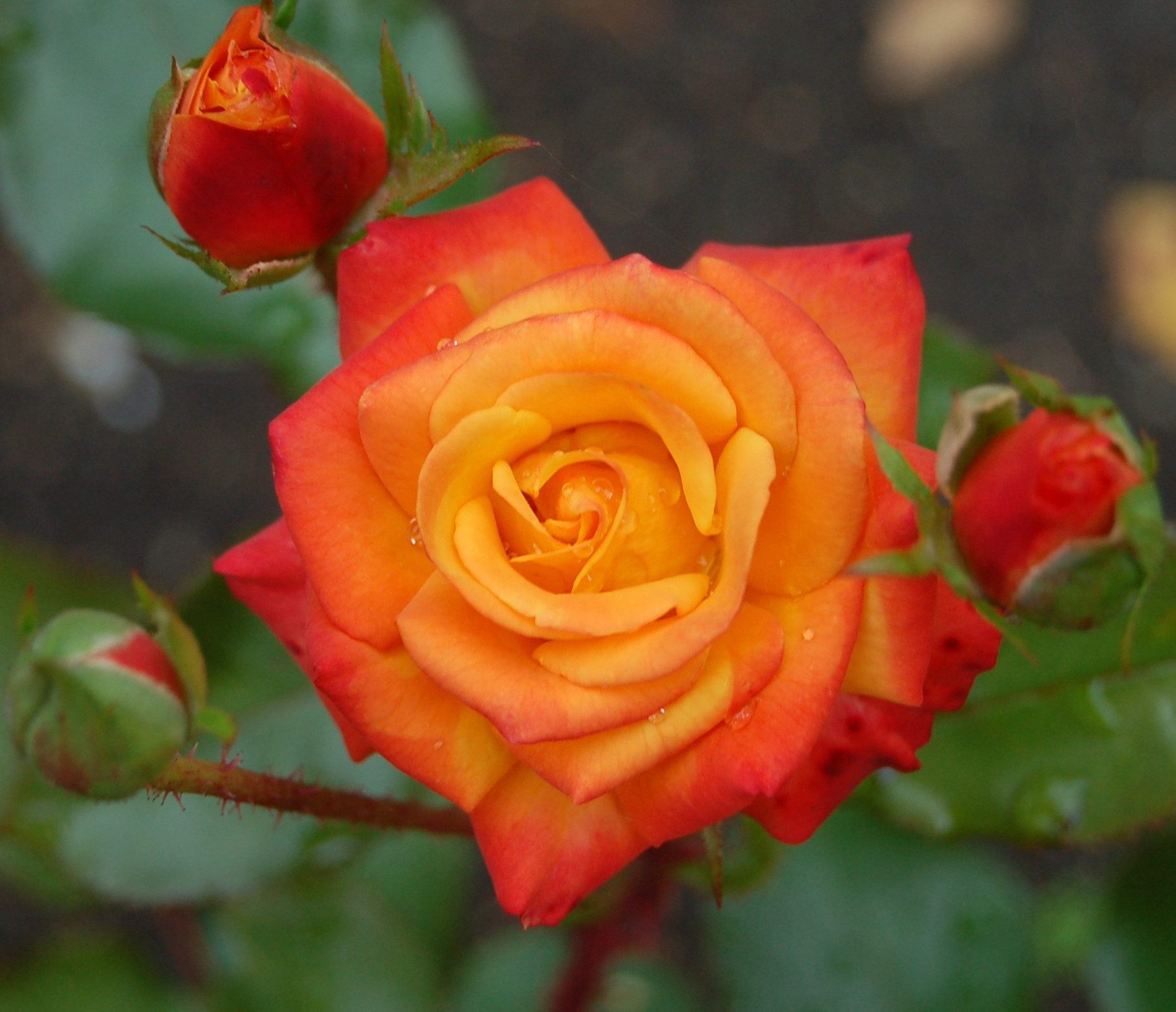Сорт флорибунда (спрей) з яскравими лососево-рожевими або оранжево-червоними махровими квітами, що мають бокалоподібну форму.