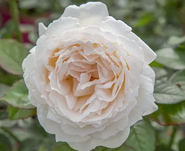 Квітка вершкова з рожевим відтінком по краях пелюсток. Красиво розкривається з незвично повного бутона в троянду у формі півонії, з насиченим ароматом.