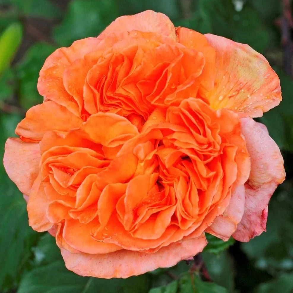 Вишукана чайно-гібридна троянда з великими, густомахровими квітами теплих абрикосово-помаранчевих відтінків, що переливаються ніжним рожевим тоном. Пелюстки з легкою хвилястістю створюють м’який об’єм і витончену форму бутона.