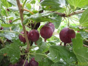 Ягоди дуже гарного коричнево-червоного забарвлення, округло-овальної форми, розміщені по 1-3 штуки в китиці. На молодих сильних кущах масою 6–8 грамів — просто велетенські, на більш дорослих трохи дрібніші — 3,5–4,0 грами. Розмір близько 1,8 на 1,8 сантиметра. Шкірка середньої товщини, м’якуш соковитий, приємного гармонійного кисло-солодкого смаку. Дегустаційна оцінка експертів дуже висока — 4,6–4,9 бала. Урожай з куща 4,5–8,0 кілограмів залежно від віку і умов.